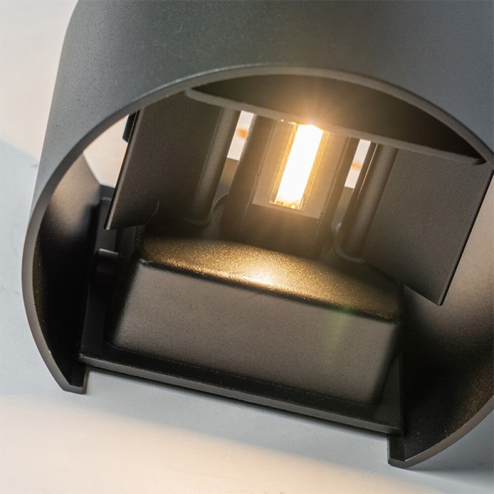 Lampara de Pared para exterior Bidireccional, con Led integrado, 6 W, ideal para frentes de residencias o comercios. Gracias a su sistema de regulación integrado, la luz se puede direccionar para utilizar la lámpara como unidireccional o bidireccional. También tiene la función de ajustar el ángulo de apertura de la luz en ambos lados.